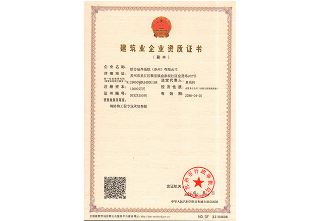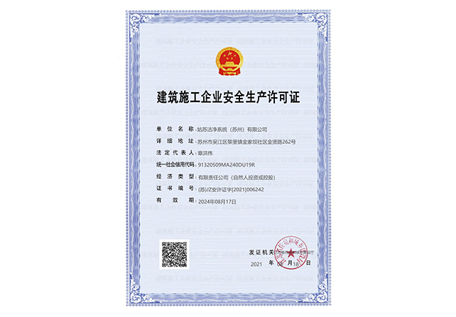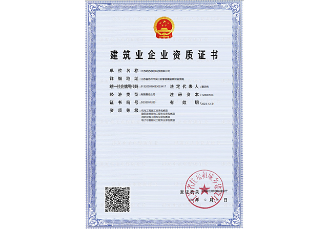 江蘇姑蘇凈化科技有限公司,具有國家電子與智能化工程壹級資質(zhì),國家機電安裝工程壹級資質(zhì),國家建筑裝修裝飾工程壹級資質(zhì) 姑蘇凈化科技有限公司,具有國家機電工程施工總承包貳級、國家空氣凈化工程二級資質(zhì),國家電子與智能化工程二級資質(zhì),國家機電安裝工程二級資質(zhì),國家建筑裝修裝飾工程二級資質(zhì),消防設(shè)施工程專業(yè)二級資質(zhì)企業(yè)。