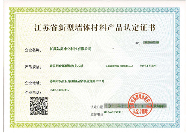 江蘇省新型墻體材料產(chǎn)品認定證書